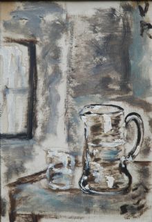 De Pisis Filippo Tibertelli Ferrara 1896 Milano 1956 "Natura morta con brocca e bicchiere" 1942-43, olio su cartone (cm 25x17,4) Firmato in basso a destra Opera archiviata presso l'Associazione per il patrocinio e lo studio della figura e dell'opera di Filippo de Pisis con il n. 03924