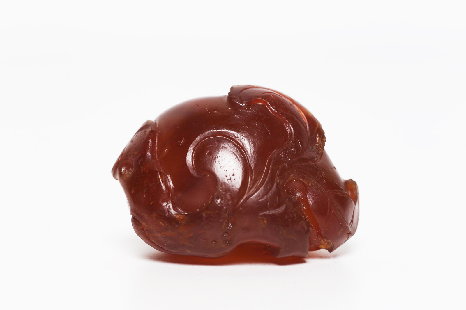 Arte Cinese Corniola incisa con elementi vegetali Cina, XIX secolo. -. Cm 3,70 x 4,00.