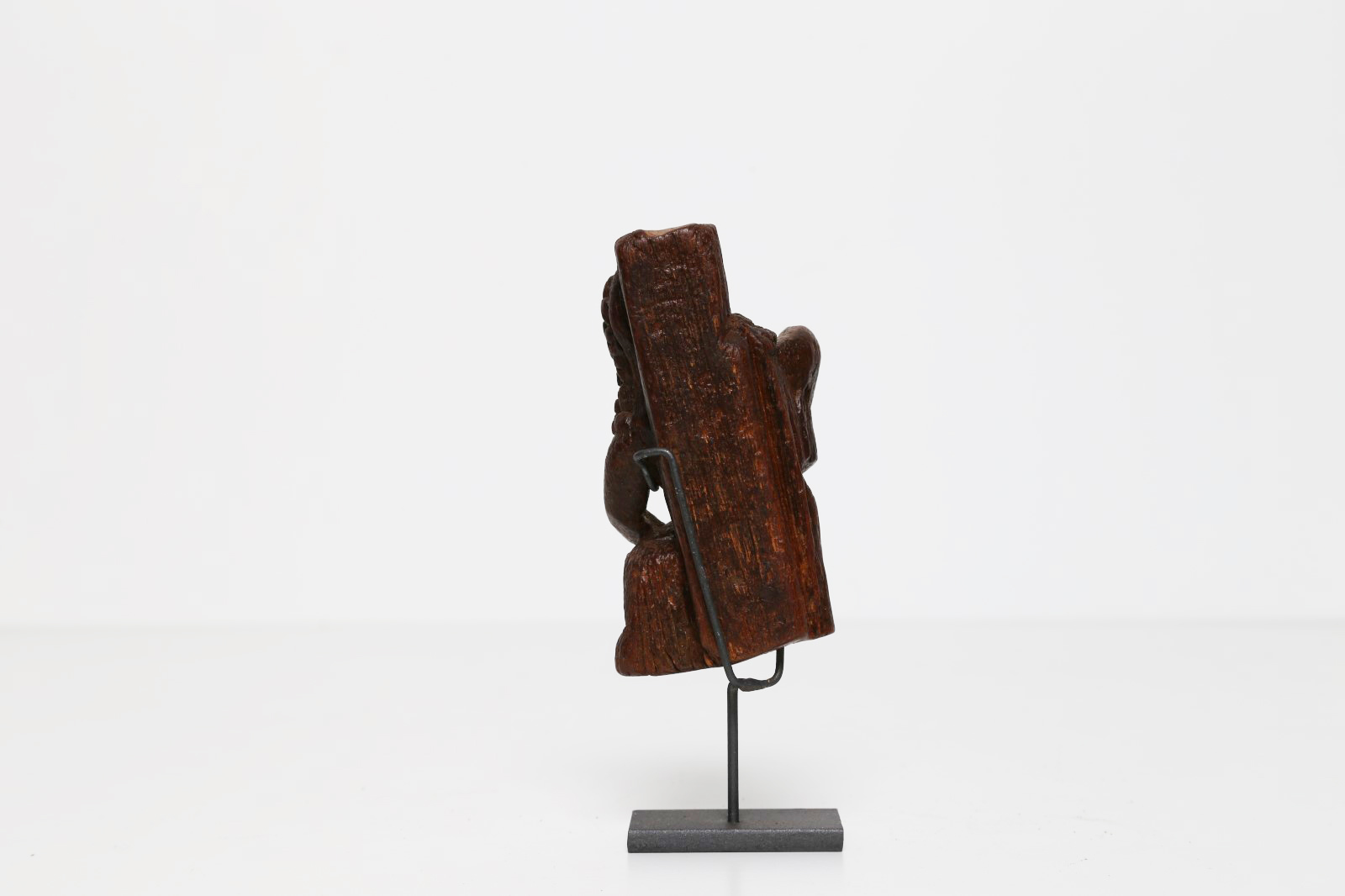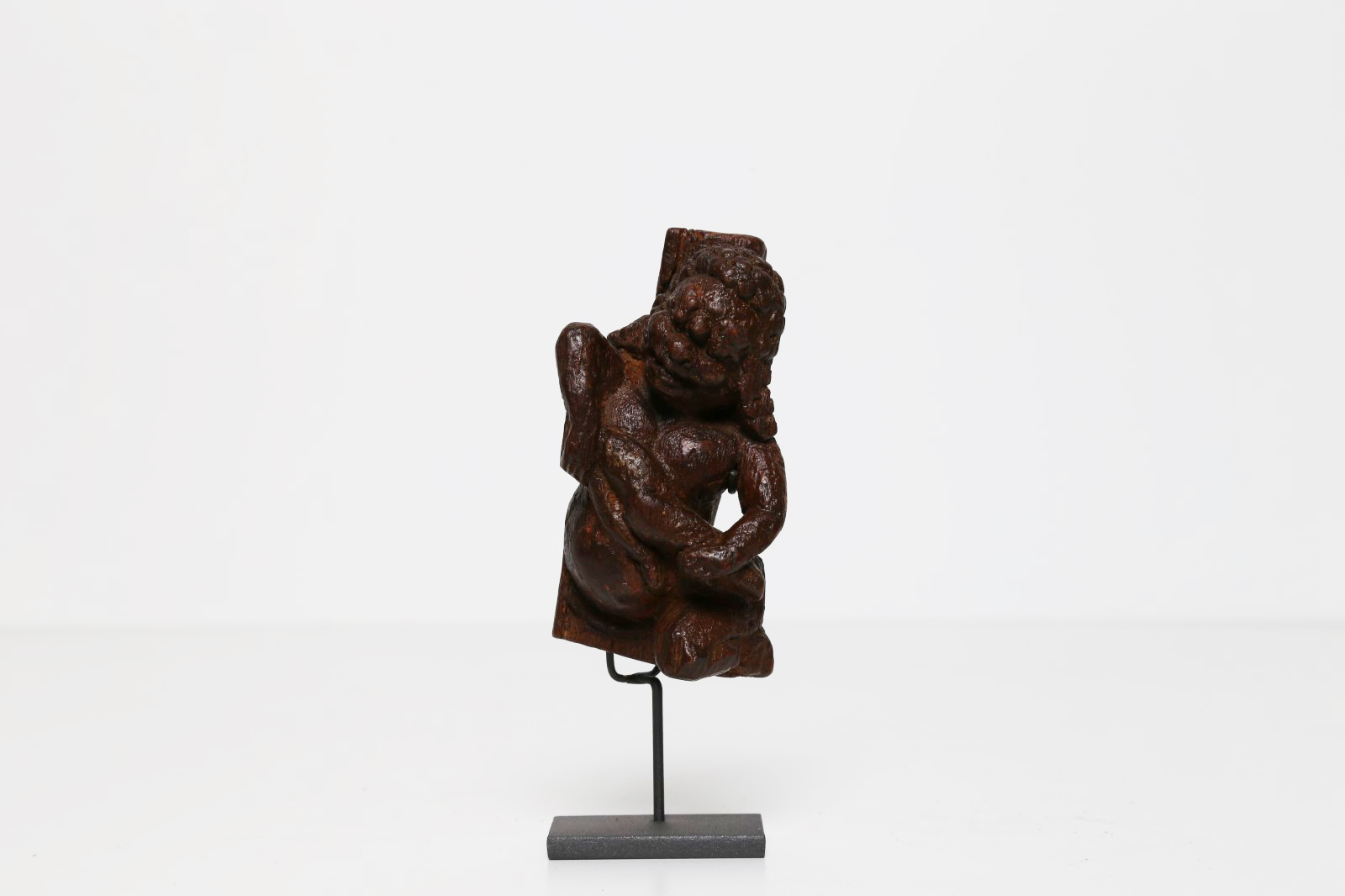 Arte Himalayana Piccola figura lignea di demone Nepal, XVII - XVIII secolo. -. Cm 5,30 x 10,00. Frammento di fregio da pagoda raffigurante un demone nell'atto di uccidere un bambino.