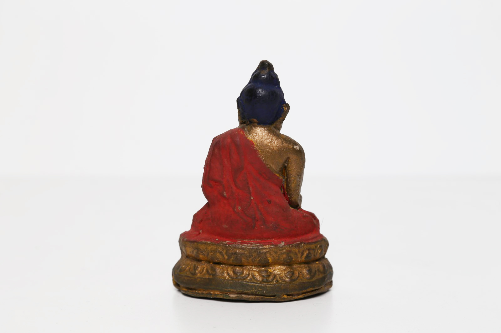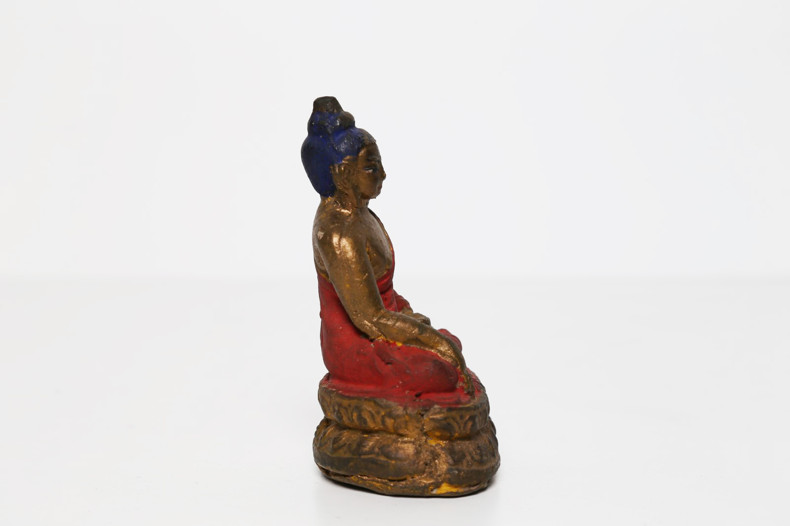 Arte Himalayana Piccola scultura in stucco policromo raffigurante Buddha con...