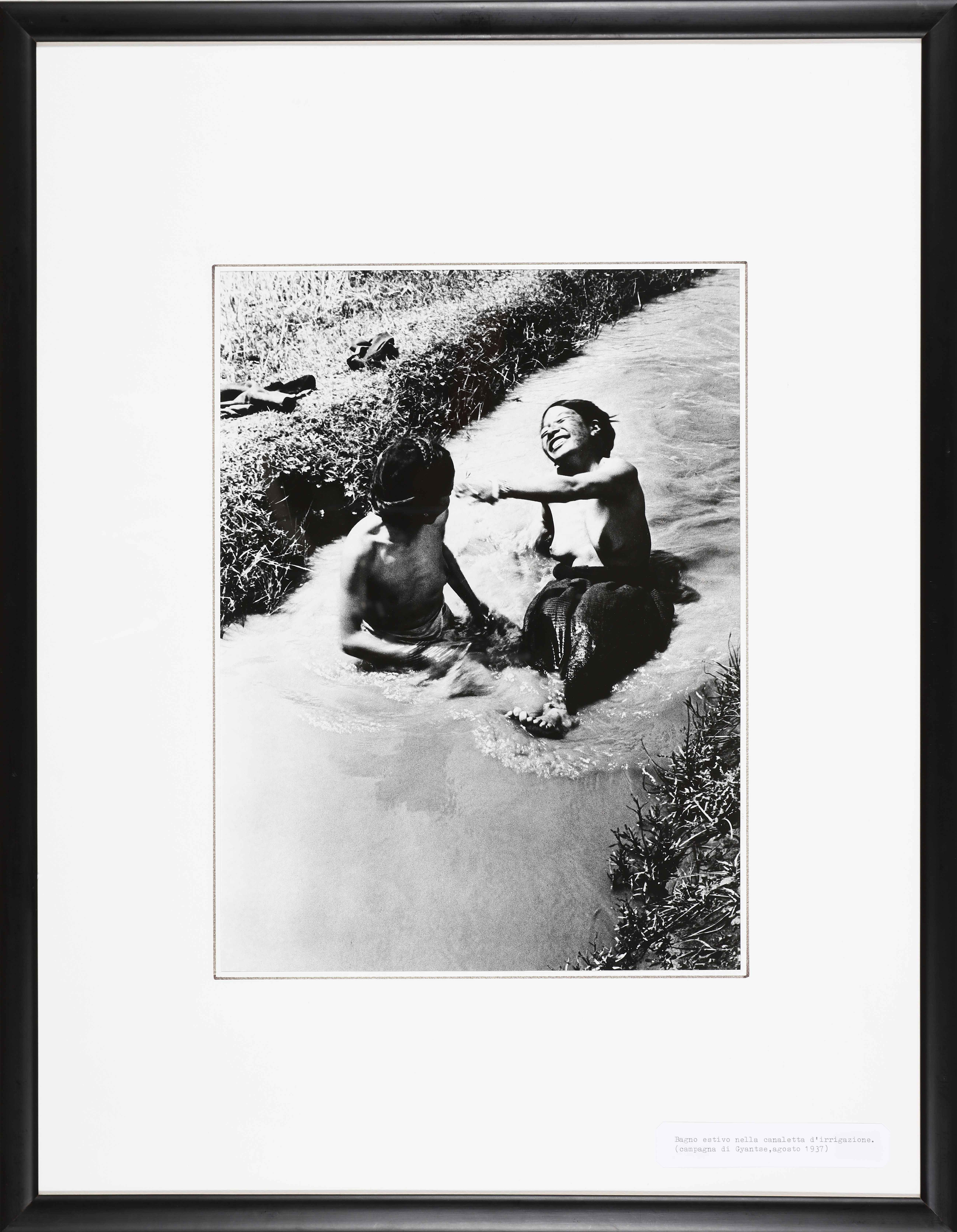 Arte Himalayana Fosco Maraini (1912 - 2004) Fotografia raffigurante due bambini intenti in un bagno estivo nella canaletta d'irrigazione. Tibet, Gyantse, 1937. 1937. . Cm 50,00 x 64,00. No crediti. Dimensione lastra: 39 x 28 cm. Cornice presente
