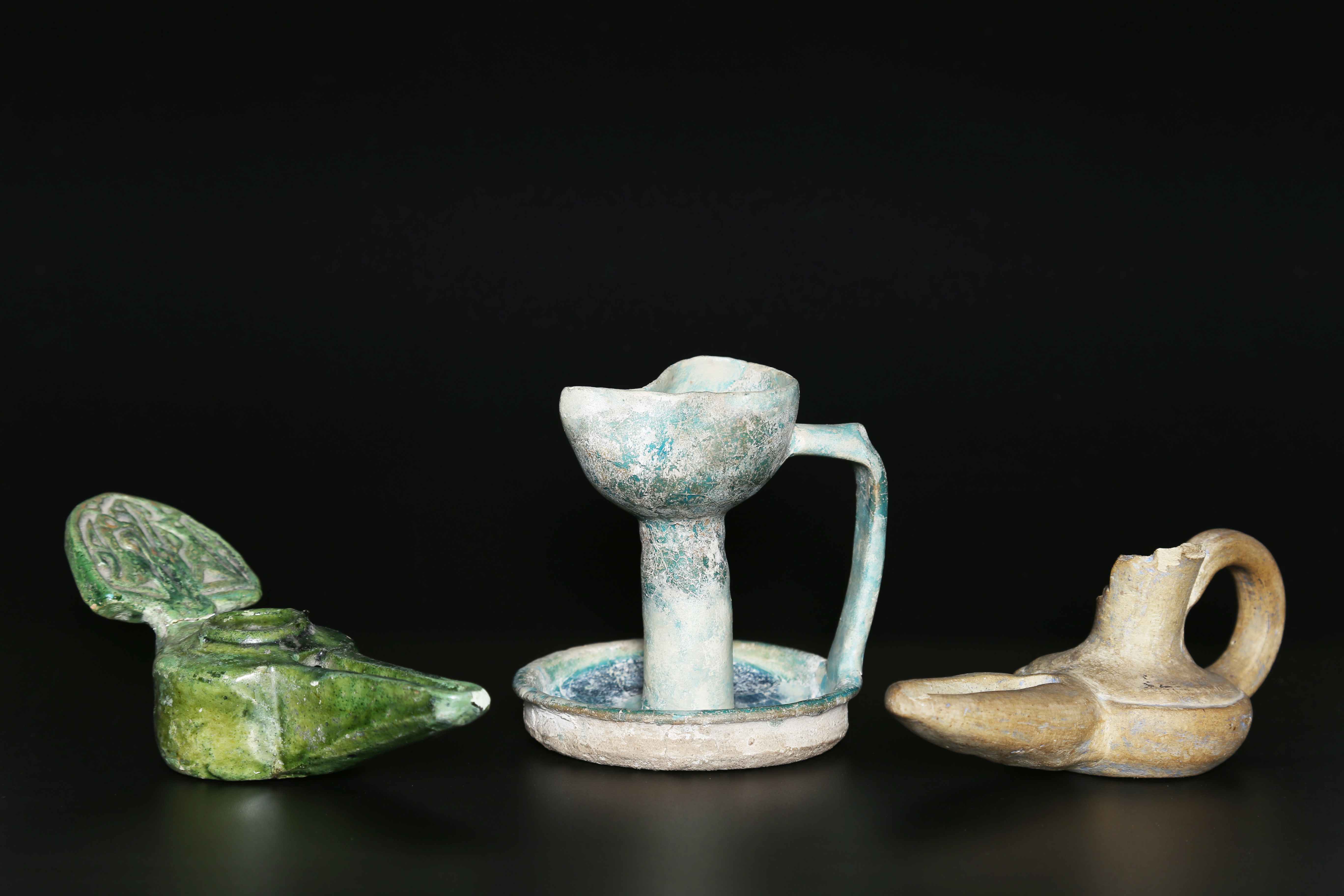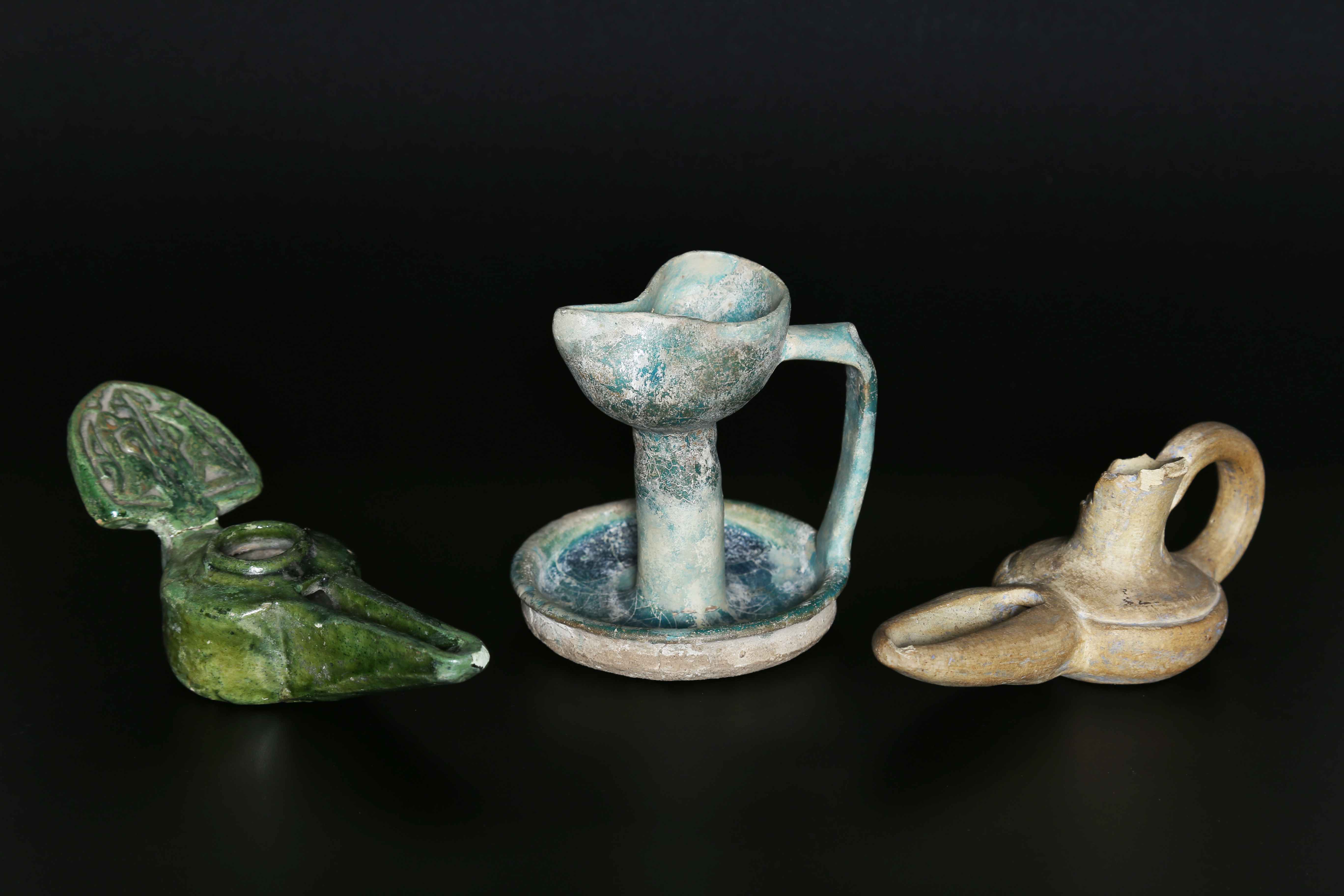 Arte Islamica Tre lampade ad olio in ceramica Iran, XI - XII secolo. . Cm...