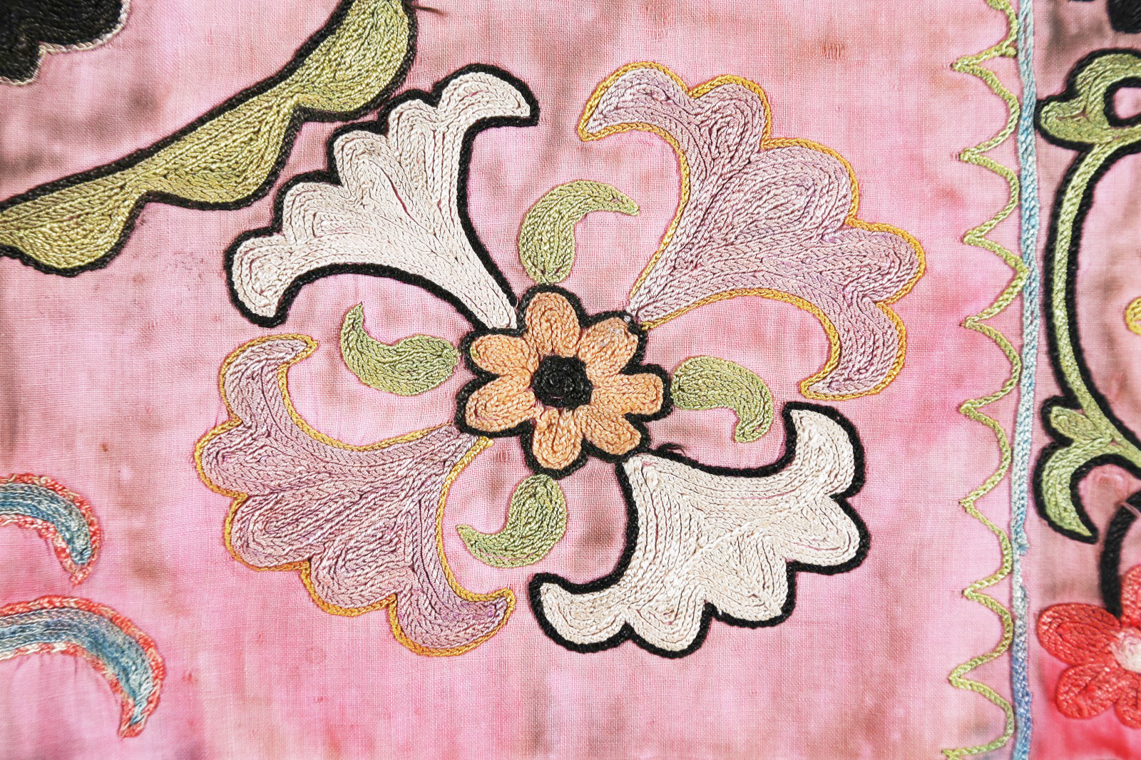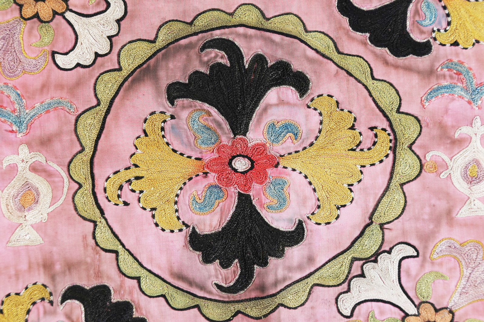 Arte Islamica Stendardo o copri teiera in seta Lakai rosato Afghanistan...