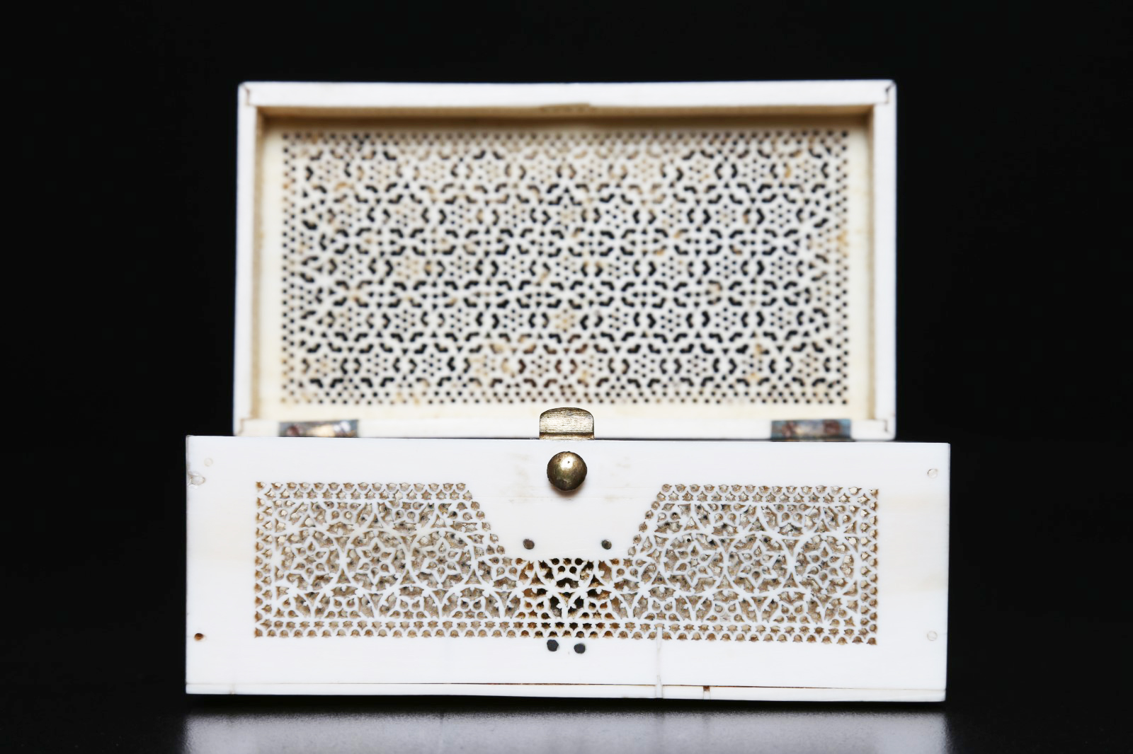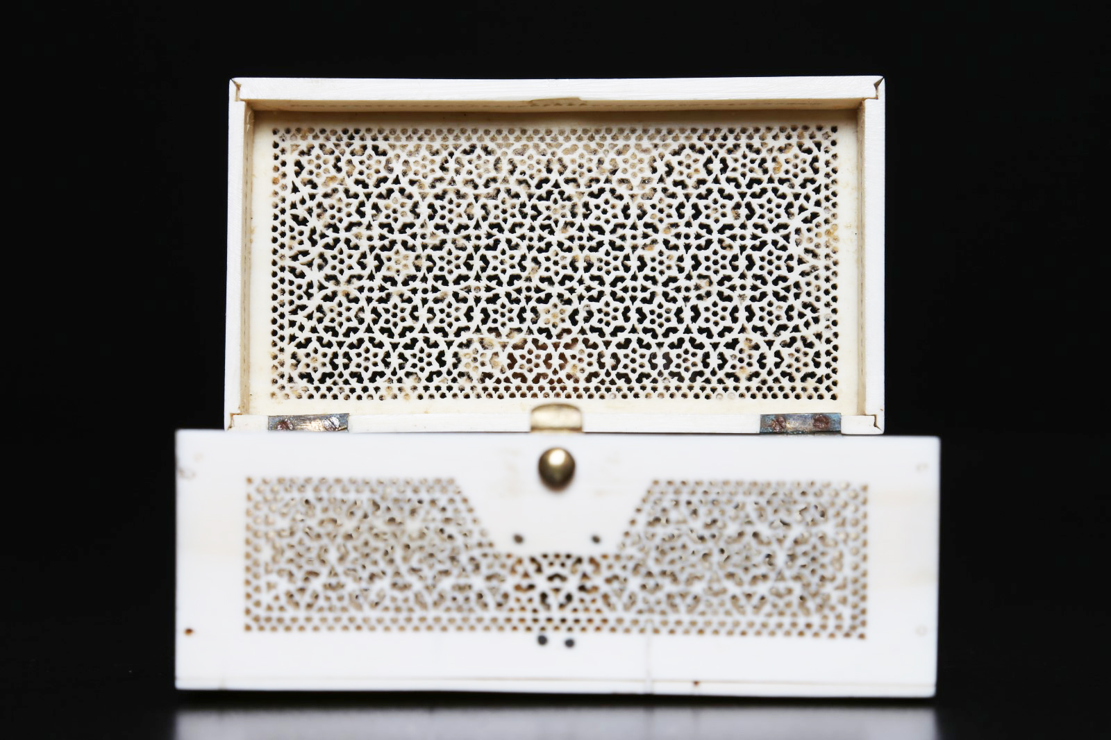 Arte Indiana Scatola in avorio lavorata a traforo India, tardo XIX - XX...