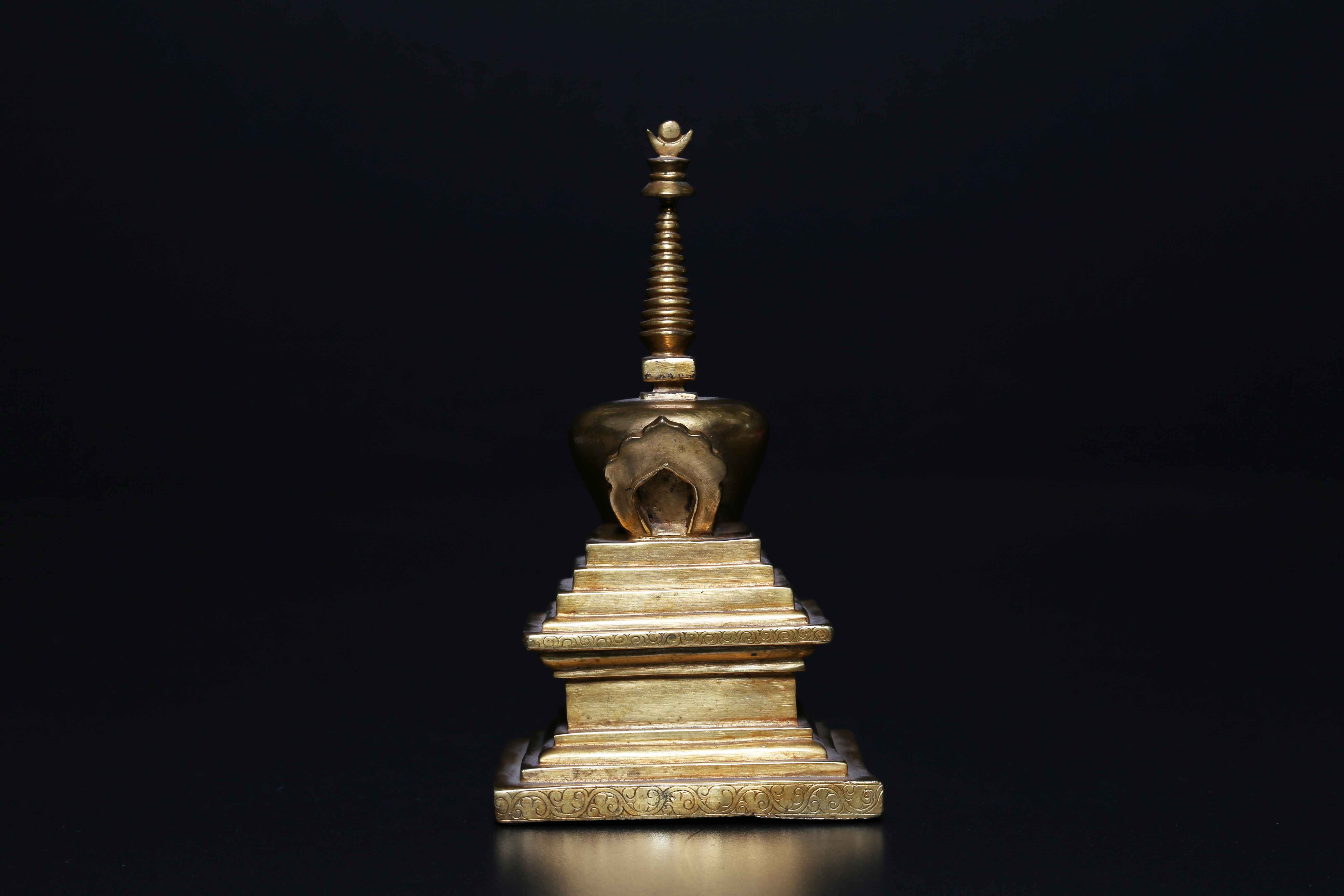 Arte Himalayana Stupa in bronzo dorato Tibet, inizio XX secolo. -. Cm 10,00 x...
