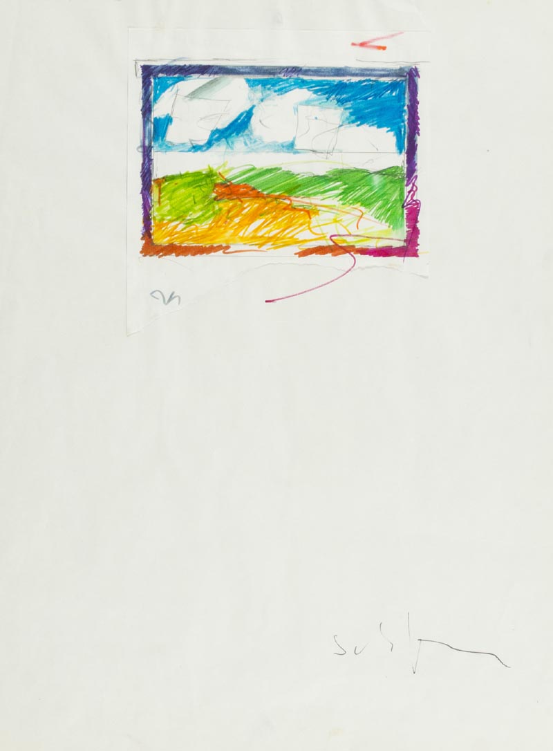 Mario Schifano (Homs 1934 Roma 1998) Senza titolo fine anni 70 Tecnica mista su carta, cm. 56x42 Firmato in basso a destra Etichetta "Valente Arte", Finale Ligure, con descrizione; Esposizione: "Mario Schifano - parole non dette", 26 Marzo - 30 Aprile 2005, Valente Arte Contemporanea", Finale Ligure, pubblicato sl catalogo della mostra. Certificato di Autenticità e Archiviazione "Valente Arte Contemporanea", Finale Ligure, con foto.