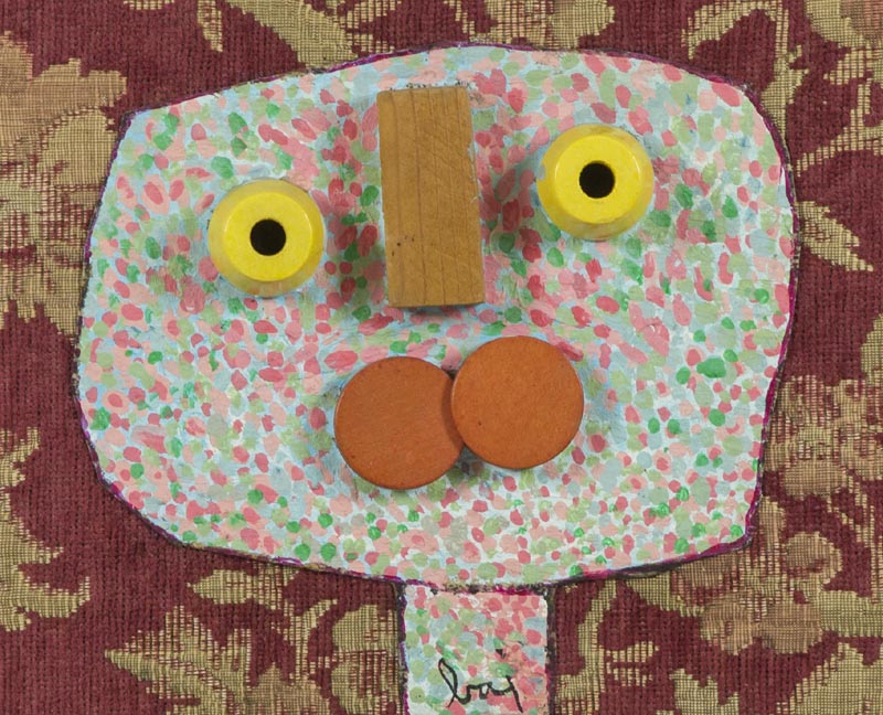 Enrico Baj (Milano 1924 2003) Testa 1973 Acrilici e collage su tavola, cm. 22x27x4,5 Firmato in basso al centro; Sul verso: Scritto ed Etichetta di provenienza. Autentica di Roberta Cerini Baj Enrico Crispolti, Enrico Baj", su foto con Archivio n° 1656.A.