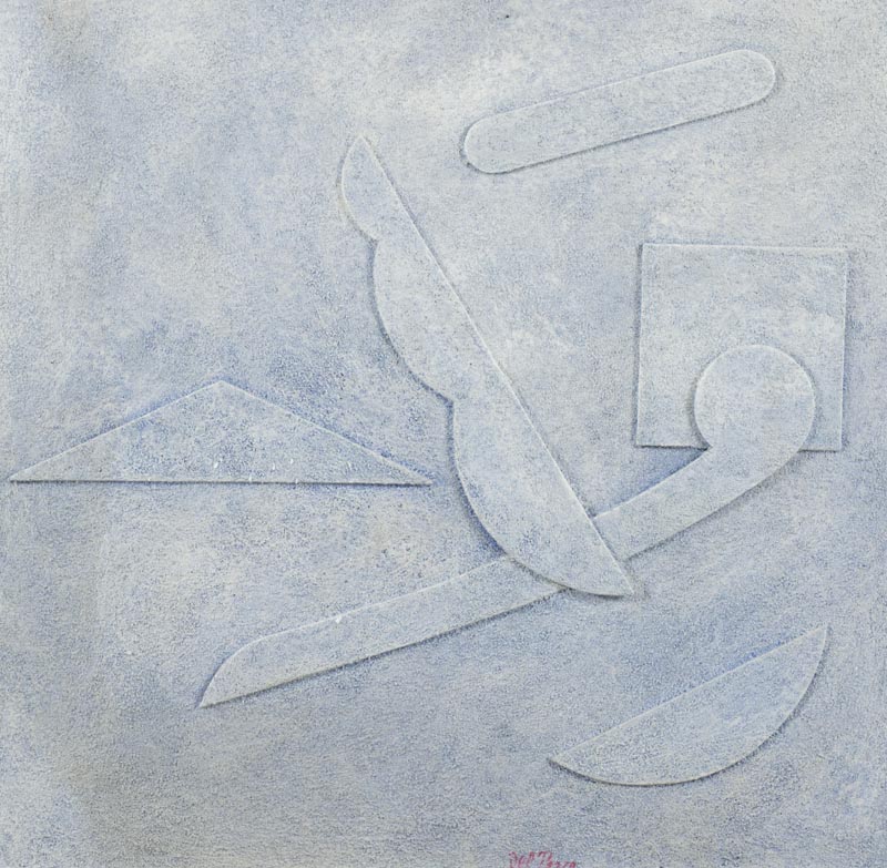 Lucio del Pezzo (Napoli 1933) Senza titolo 1970 Acrilico, sabbia a e collage su tavola, cm. 41x42 Firmato in basso al centro; Sul verso: firma e data.