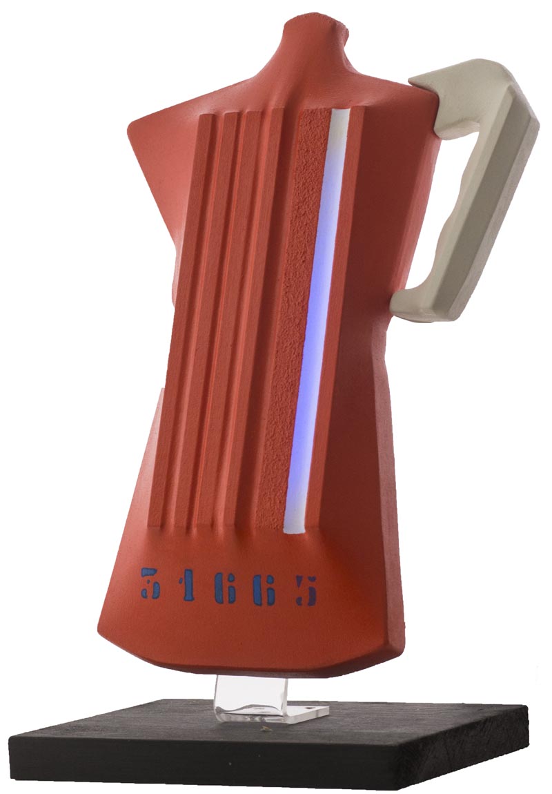 Fabrizio Giorgi (Livorno 1953) Caffè Tela estroflessa su legno sagomato con led su base di legno, cm. 49x27x29 Firmato sul lato sinistro Sul verso: firma e titolo. Autentica dell'Artista su foto.