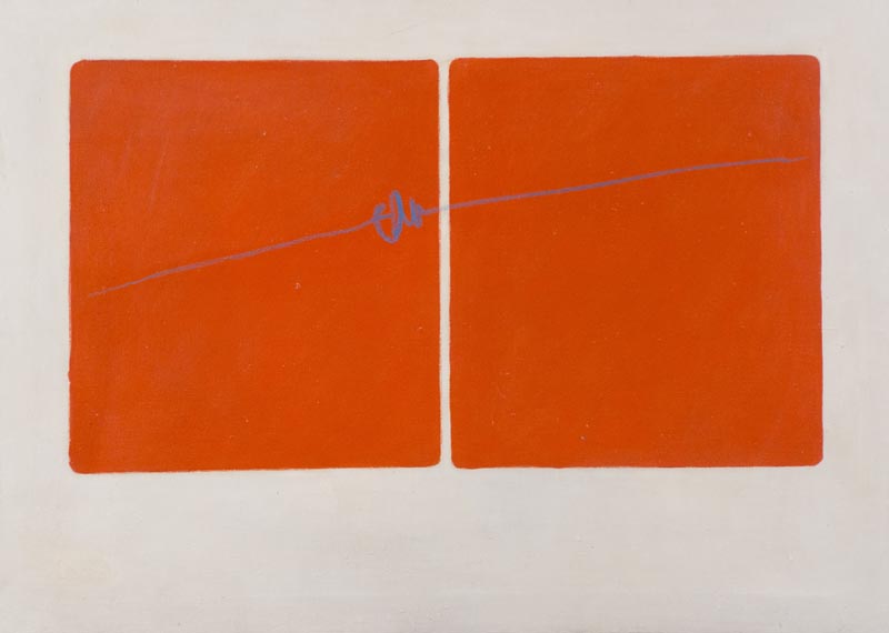 Angelo Verga (Milano 1933 1999) Due rossi 1967 Olio su tela, cm. 50x70 Sul verso: firma, data e titolo; Etichetta: "Galleria Cadario", Milano