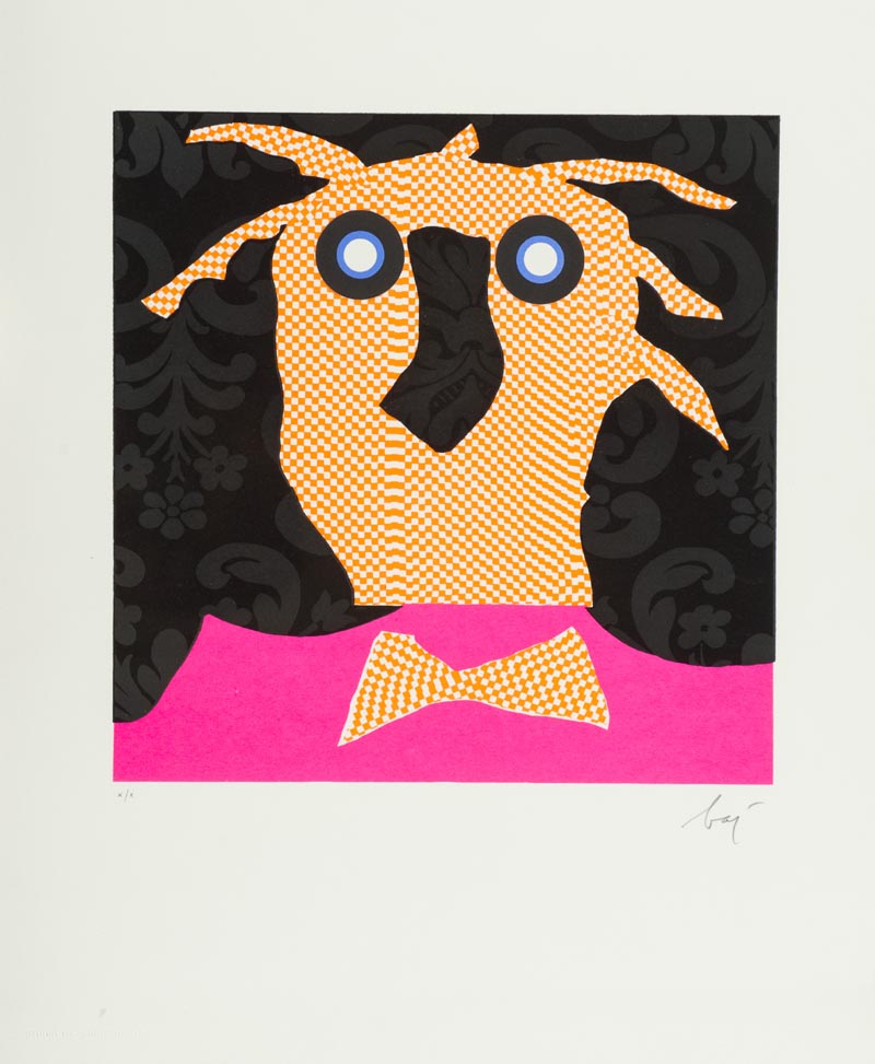 Enrico Baj (Milano 1924 2003) Senza titolo Serigrafia su cartoncino, cm. 60x50, es. X/X Firma in basso a destra, tiratura e timbro a secco "Studio Marconi Grafica", in basso a sinistra.