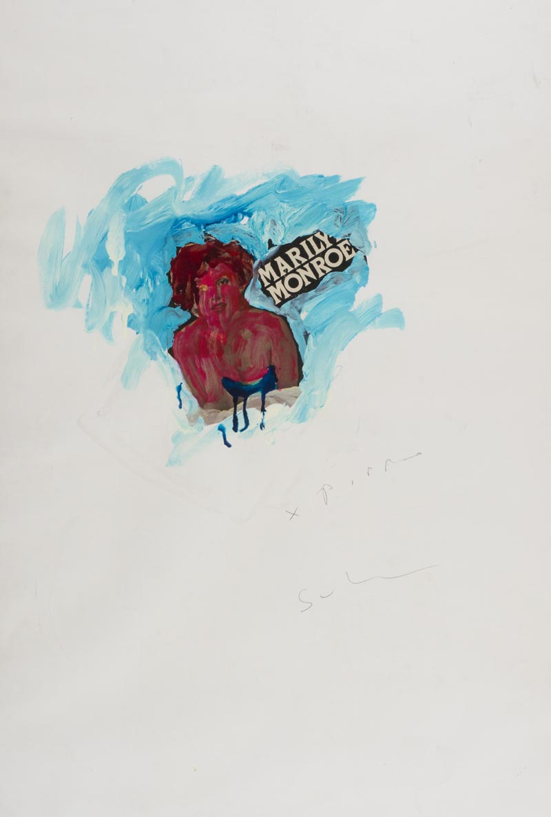 Mario Schifano (Homs 1934 Roma 1998) Senza titolo 1980 Tecnica mista su carta, cm. 100x70. Firma e dedica a persona in basso a destra. Autentica dell'Archivio Generale dell'Opera Pittorica di Mario Schifano su foto, con archivio n° 80/128