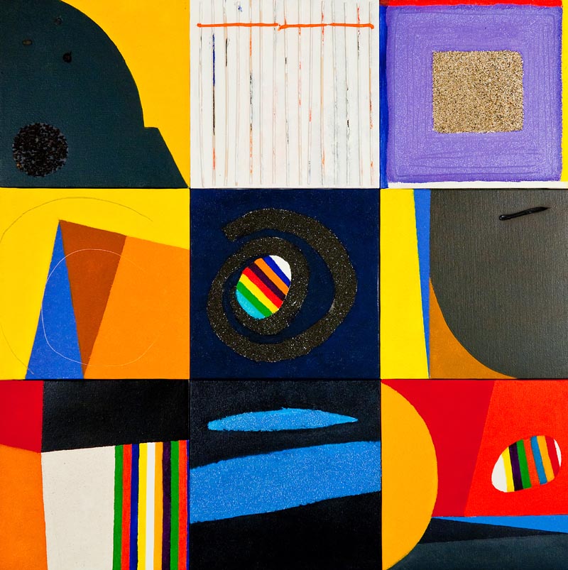 Walter Fusi (Udine 1924 Firenze 2013) Carmina Burana 2008 Olio e tecnica mista su nove tele, cm. 90x90 Ciascuna tela misura cm. 30x30 Sul verso: firma, data, titolo e descrizione. Autentica dell'Artista su foto.