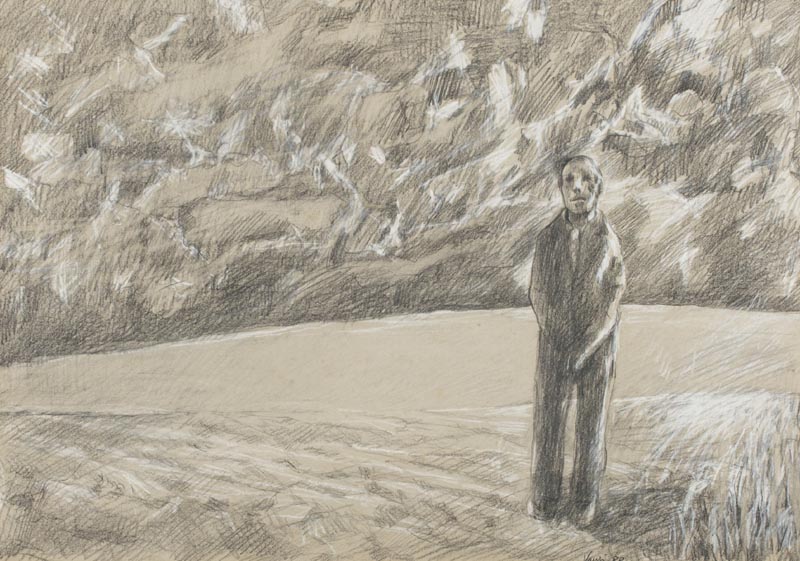 Giuliano Vangi (Barberino di Mugello 1931) Figura 1988 Tecnica mista su cartoncino, cm. 50x70 Firma e data in basso a destra; Etichetta "Galleria Biasutti", Torino, con timbro e descrizione; Etichetta con provenienza. Autentica dell'Artista su foto.