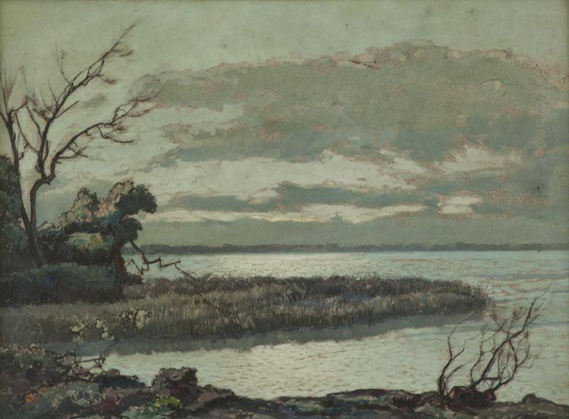 Gino Romiti (Livorno 1881 1967) Marina Olio su faesite, cm. 30x40 Firmato in basso a sinistra; Sul Verso: etichetta "Bottega d'Arte", Livorno.