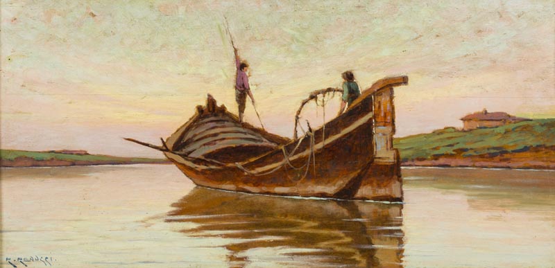 Renuccio Renucci (Livorno 1880 Livorno 1947) Barcaioli Olio su tavola, cm....