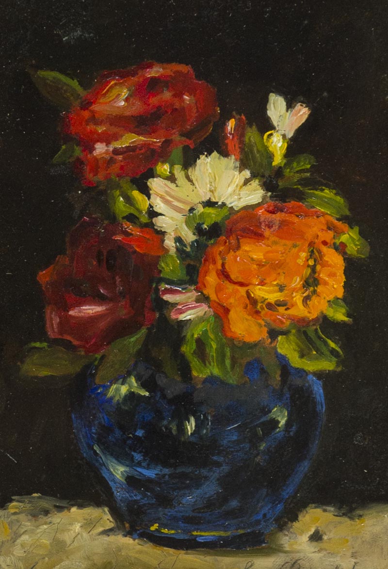 Giovanni Bartolena (Livorno 1866 Livorno 1942) Vaso di fiori Olio su tavola, cm. 20x14 Firmato in basso a destra; Sul verso: Etichetta e Timbri di Provenienza.