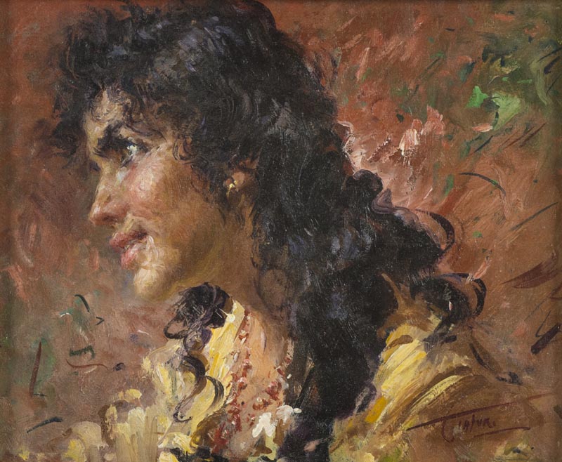 Clemente Tafuri (Salerno 1903 Genova 1971) Volto 1950 Olio su tavola, cm. 29x35 Firmato in basso a destra. Autentica dl figlio Lucio Tafuri su foto