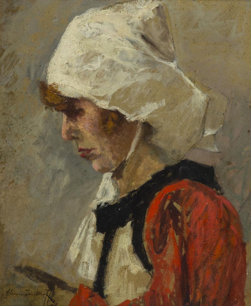 Alessio Issupoff (Vjatka (Rus) 1889 Roma 1957) Figura Olio su cartone, cm. 43x36 Firmato in basso a sinistra.