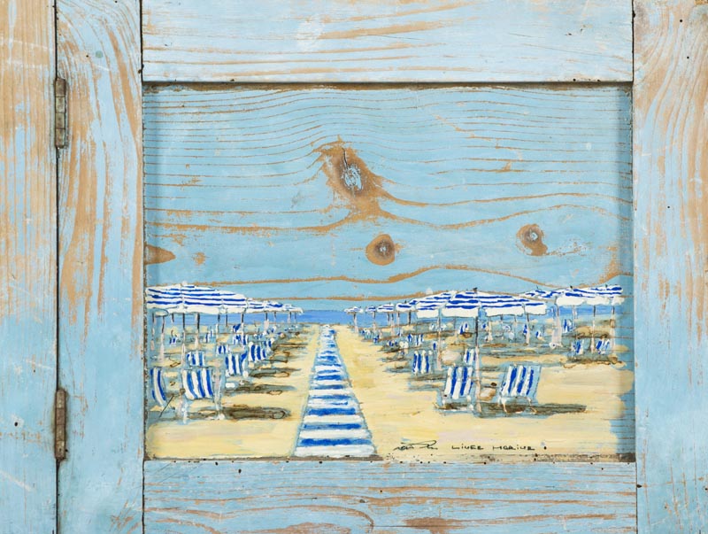 Massimo Lomi (Livorno 1953) Linee marine 2015 Tempera su tavola, cm. 23x30, realizzata su anta di cm. 34x44 Firma e titolo in basso a destra; Sul verso: Certificato di Autenticità dell'Artista con descrizione.