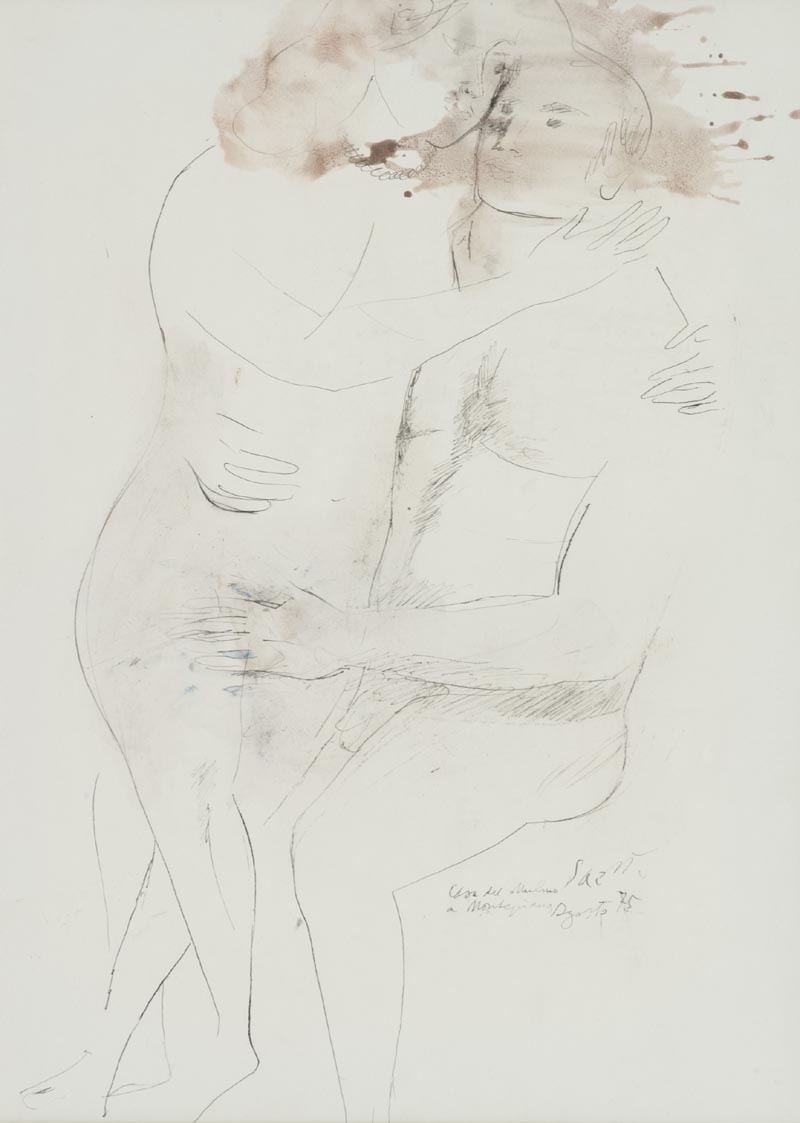 Bruno Saetti (Bologna 1902 1984) Figure 1975 Tecnica mista su carta applicata su tela, cm. 66,5x49,5 Firma e data in basso a destra.