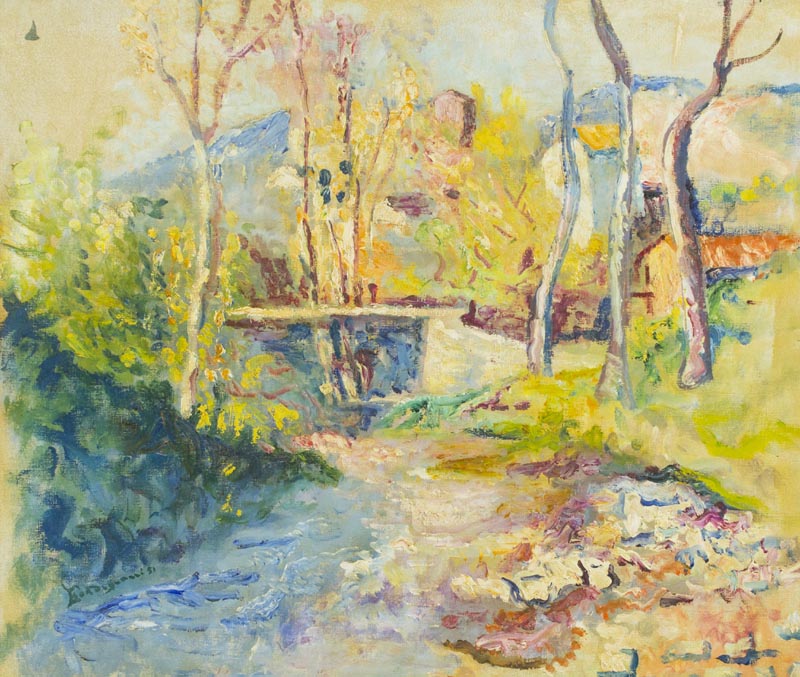 Eduardo Gordigiani (Firenze 1866 Popolano di Marradi (Fi) 1961) Paesaggio 1951 Olio su tela, cm. 52,5x61,5 Firma e data in alto a sinistra.