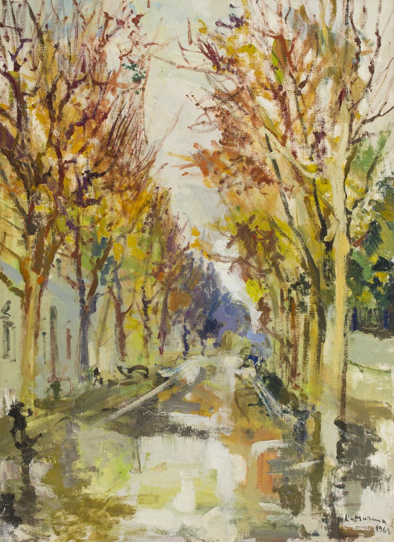 Rodolfo Marma (Firenze 1923 Firenze 1998) Viale Matteotti 1965 Olio su tela, cm. 70x50 Firma e data in basso a destra; Sul verso: firma, data, titolo e Archivio. n° 317. Autentica dell'Archivio ufficiale a cura di "Firenzeart", con foto e Archivio n. 317.