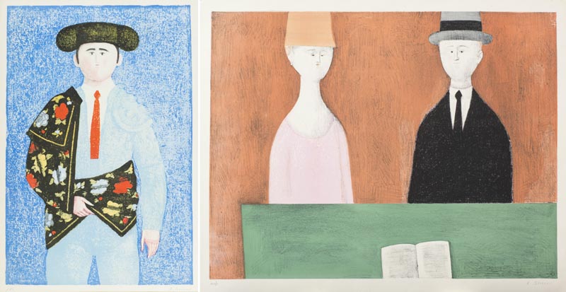 Antonio Bueno (Berlino 1918 Firenze 1984) Lotto unico di due opere -"Torero", Litografia su carta, cm. 70x50, es. P.A., firmato in basso a destra; -"Senza titolo", Litografia su carta, cm. 55x69, es. XCIII/C, firma in basso a destra, tiratura in basso a sinistra.