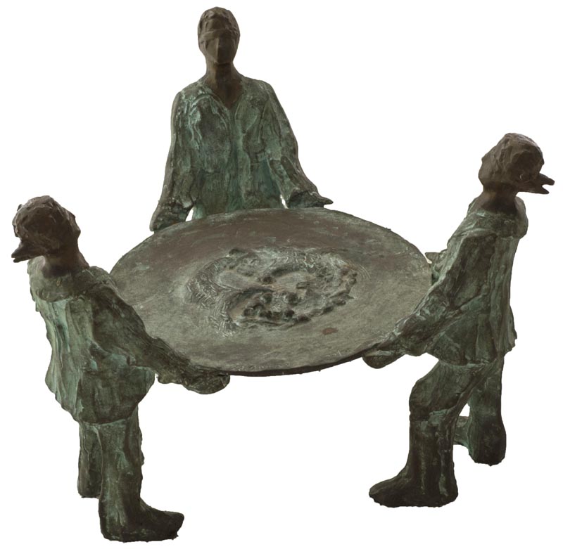 Roberto Barni (Pistoia 1939) Servi muti Bronzo patinato, cm. 33x45x45, es. 99/150 Firma e tiratura al centro.