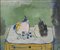 Franco Rognoni (Milano 1913 1999) Natura morta anni '70 Tecnica mista su carta intelata, cm. 45x55 Firmato in basso a destra. Sul verso: Timbri "Galleria d'Arte Lo Spazio", Brescia. Autentica della moglie Mariuccia Rognoni Noè su foto.
