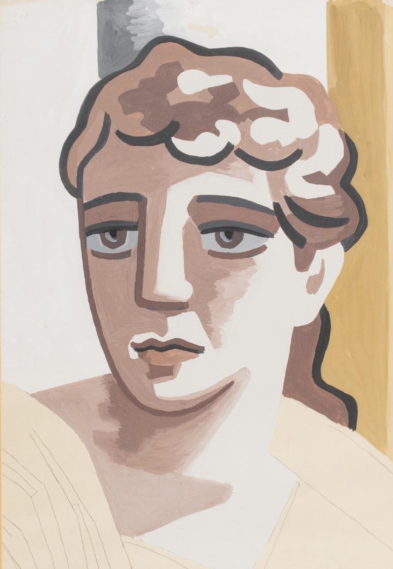 Gino Severini (Cortona (Ar) 1883 Parigi 1966) Studio di testa per la letteratura 1933 Tempera e matita su cartoncino, cm. 66x46 Esposizione: "Gino Severini - Affreschi, mosaici , decorazioni monumentali 1921 - 1941", Galleria Arco Farnese, De Luca Editore, 1992, a pag. 64 n. 47. Autentica di Daniela Fanti su foto.