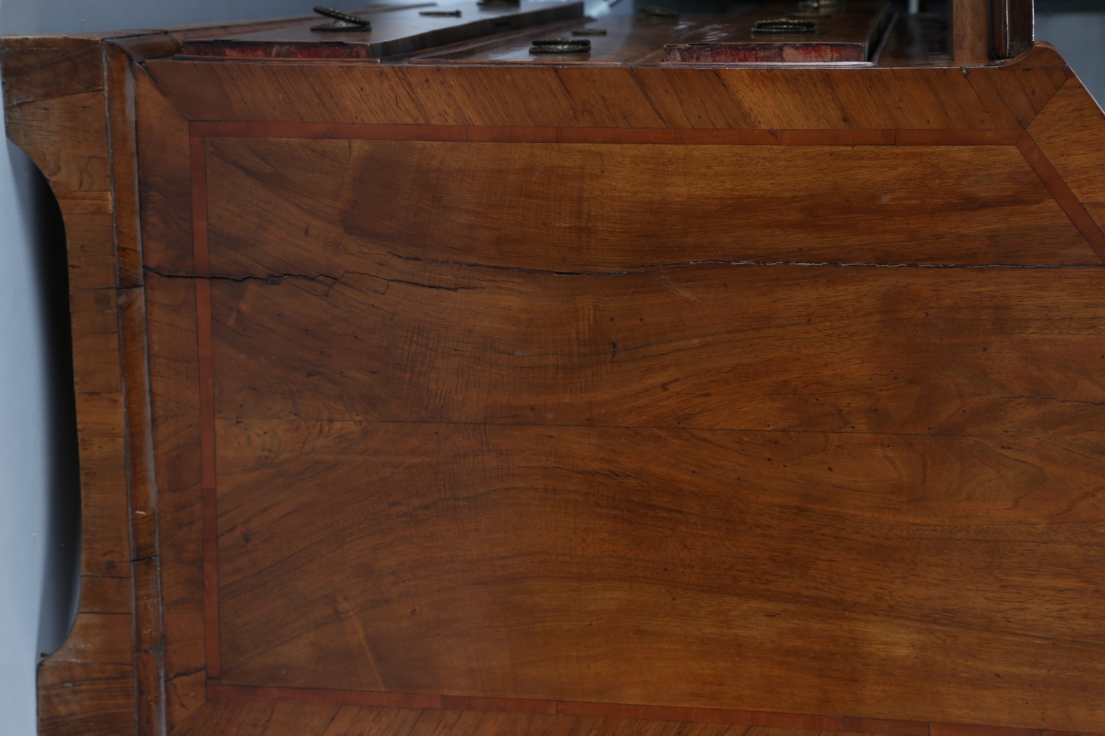 MANIFATTURA VENETA DEL XVIII SECOLO Cassettone a ribalta lastronato in radica...
