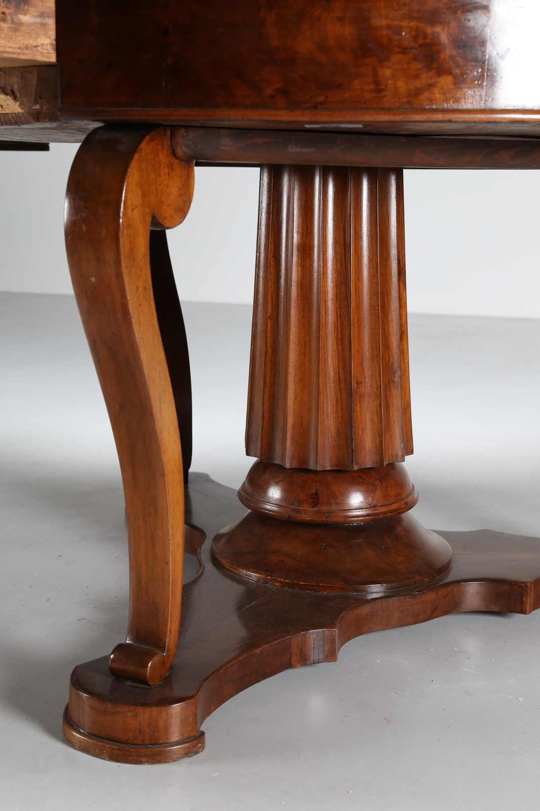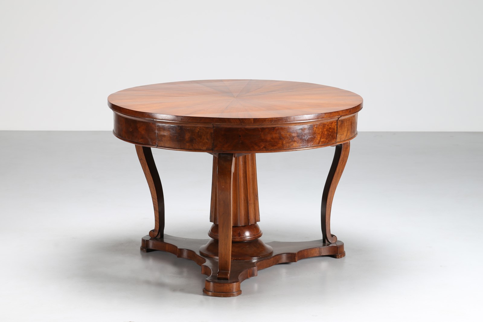 MANIFATTURA ITALIANA DEL XIX SECOLO Tavolo circolare lastronato con gamba centrale scanalata. . Cm 79,00 x 115,00.