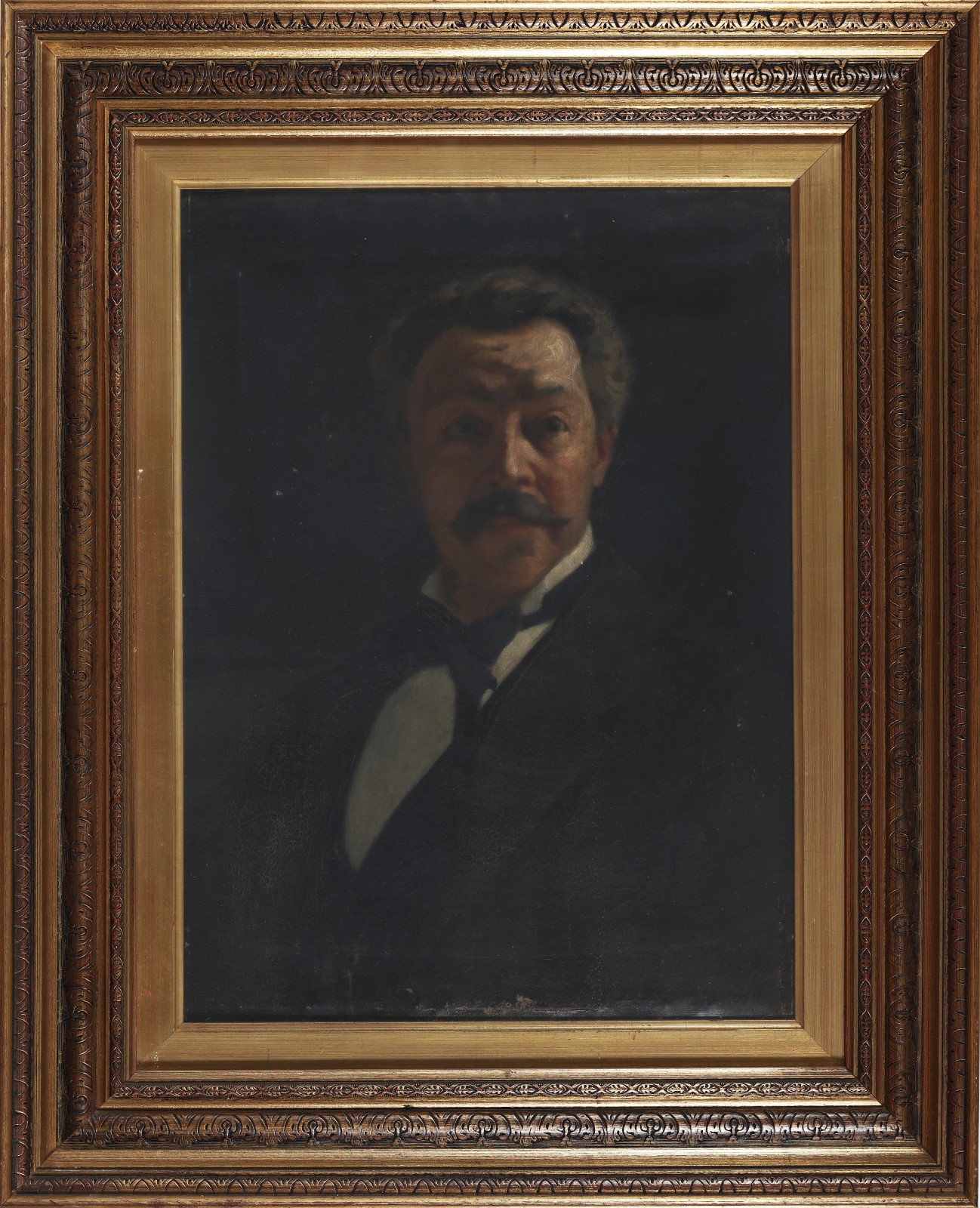 ARTISTA DEL XIX SECOLO Ritratto d'uomo con cravatta nera. Olio su tela. Cm 40,00 x 63,00. . Cornice presente