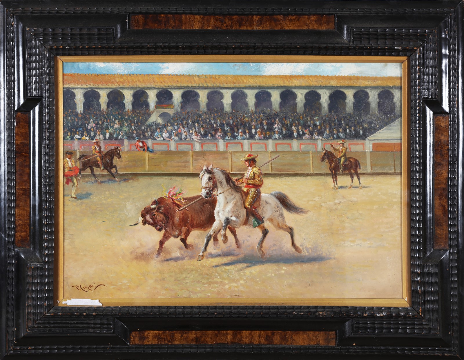 CAJANI VITTORIO (1848 - 1888) Torero. Olio su tela. Cm 70,00 x 50,00. Firma in basso a sinistra. Cornice presente