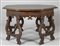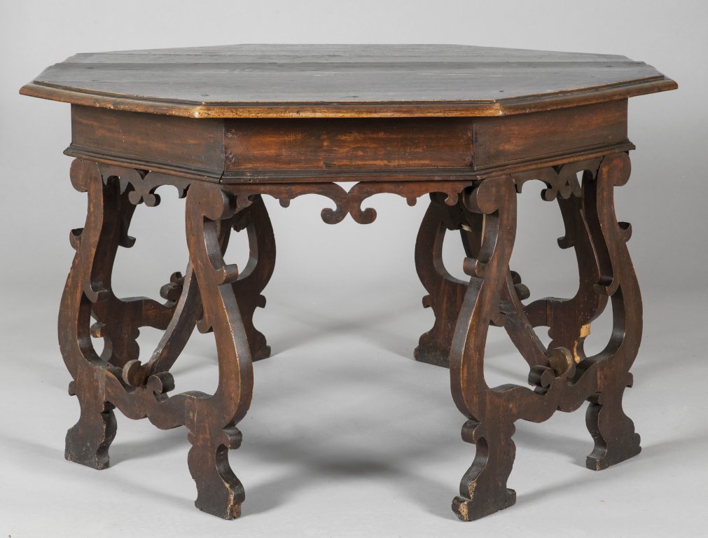 Coppia di mezzi tavoli in noce formanti un tavolo ottagonale, Lombardia sec.XVII