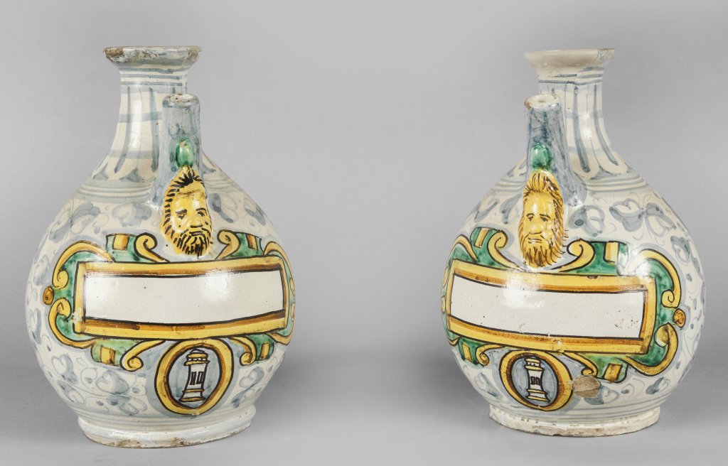 Lotto 46 | Coppia di versatoi in ceramica con decorazione policroma "farmacia del...