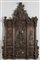 Trittico in legno finemente intagliato raffigurante Madonna con Bambino in trono circondata da Santi, in basso cartiglio "Mariae Virgini Santissimae pro venetiarum duce, Jhohanne Pisauro gens sua pisaura MDCLXVIII dicat"
