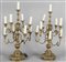 Coppia di candelieri a nove luci in legno dorato e metallo