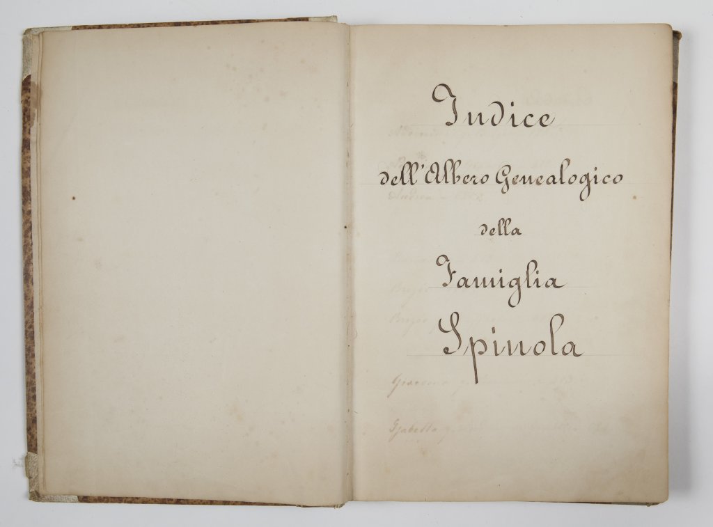 Indice dell'albero genealogico della famiglia Spinola e albero genealogico ascendentale della famiglia Spinola datato 1885