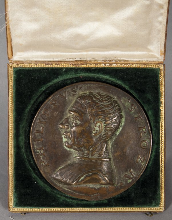 Medaglia in bronzo raffigurante Filippo Strozzi, sec. XIX con custodia in pelle