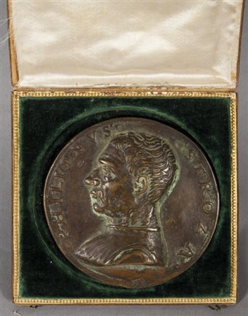 Medaglia in bronzo raffigurante Filippo Strozzi, sec. XIX con custodia in...