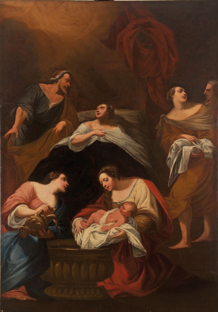 PITTORE FRANCESE INIZI XIX SECOLO La nascita Olio su tela cm 202 x 141