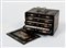 Fronte della scatola con apertura a serrandina celante cinque piccoli cassetti