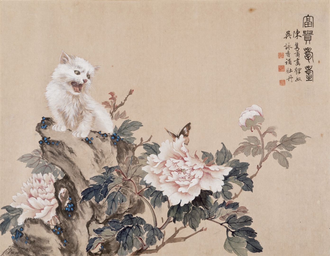 PITTORE CINESE INIZI XX SECOLO Il gatto Acquerello su carta cm 52 x 68 Firma...