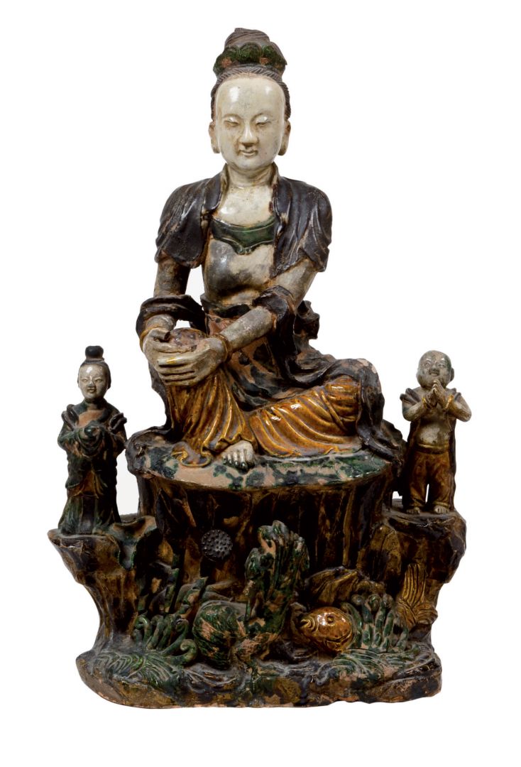 smaltata e invetriata raffigurante Bodhisattva Avalokitesvara con aiutanti