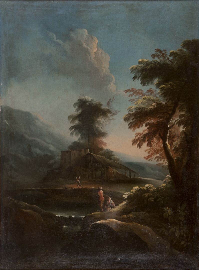 PITTORE ITALIANO FINE XVIII SECOLO Paesaggio Olio su tela cm 98 x 70