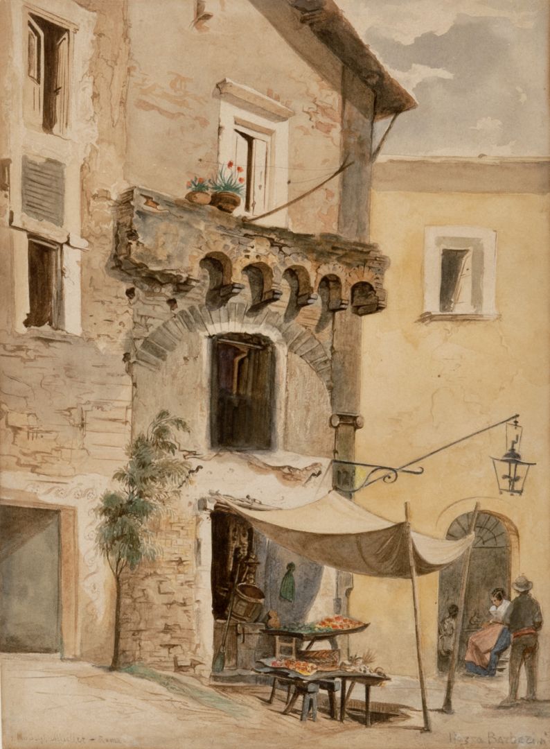 RUDOLPH MULLER Att.a Basilea 1802 - Roma 1885 Piazza Barberini Acquerello su...