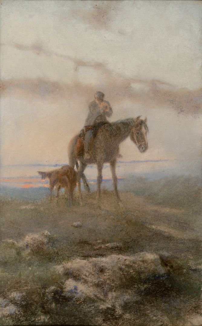 VITTORIO BENISSON Torino 1830 - Roma 1880 Paesaggio con uomo a cavallo...