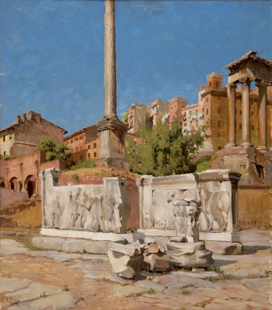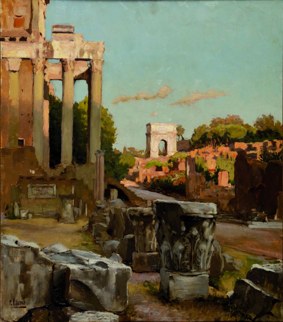 PAOLO BARONI Torino 1871 - 1945 Fori 1920 ca. Coppia di oli su tavoletta cm...